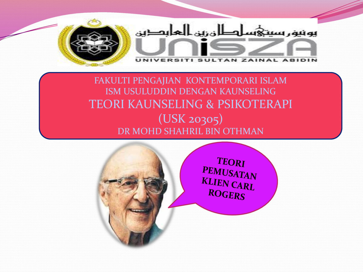 Carl rogers merupakan salah satu tokoh psikologi humanistik yang merumuskan teori kepribadian. Carl rogers dikenal sebagai psikolog humanis yang bekerja dengan pendekatan terapi. Carl rogers merupakan salah satu tokoh psikologi humanistik yang merumuskan teori kepribadian. (disusun untuk memenuhi tugas kelompokmata kuliah psikologi kepribadian ii). Teori tersebut adalah teori humanistik. Teori humanistik menurut carl rogers metode yang diterapkan rogers dalam psikoterapi awalnya disebut non direktive atau terapi yang berpusat pada klien (client centered therapy), dan pioner dalam risetnya pada proses terapi. Carl ransom rogers (1961), seorang tokoh utama dalam penciptaan psikologi humanistik, membangun teori dan praktek terapinya di atas konsep tentang pribadi yang berfungsi penuh yang sangat mirip dengan orang yang mengaktualkan diri yang dikemukakan oleh maslow. Asumsi dasar teori rogers adalah kecenderungan formatif dan kecenderungan aktualisasi. Teori ini lebih melihat pada sisi perkembangan kepribadian manusia. Psikologi humanistik carl rogers telah menimbulkan banyak kekaguman bahawa ia telah ditakrifkan pada zamannya sebagai revolusi senyap. Teori ini wajar dan sesuai dilaksanakan dalam pengajaran dan. Teori humanistik carl rogers gita juwitasari s. Carl rogers menerapkan pengalamannya menggunakan terapi.